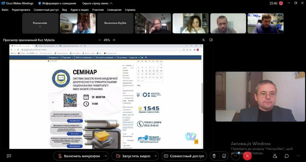 Онлайн-семінар «Система забезпечення академічної доброчесності в Прикарпатському університеті»