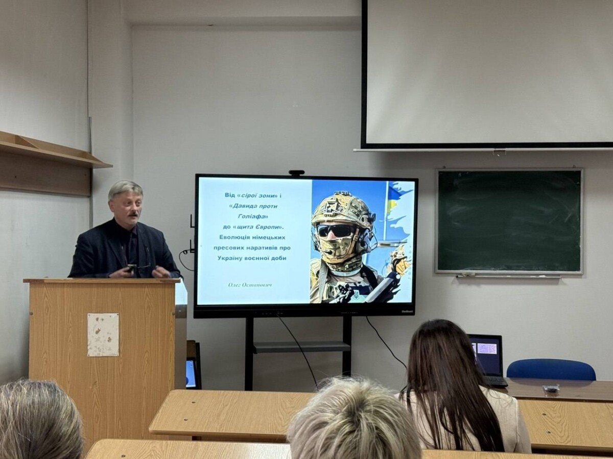 У вівторок роботу конференції продовжило факультетське пленарне засідання. Із доповіддю на тему «Від “сірої зони” і “Давида проти Голіафа” до “щита Європи”. Еволюція німецьких пресових наративів про Україну воєнної доби» виступив кандидат філологічних наук, доцент кафедри німецької філології Олег Остапович Олег Остапович.